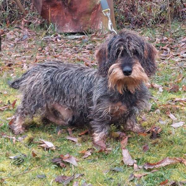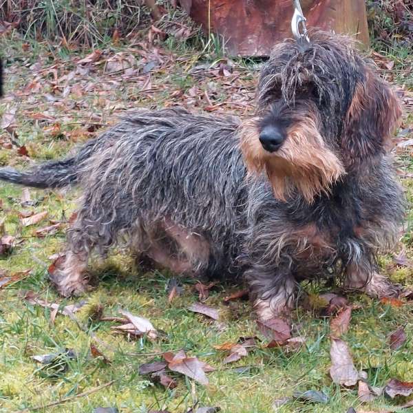 Sam je 6letý pes jezevčíka drsnosrstého. Jeho majitel zemřel. Byl zvyklý na zahradě u domku. Na lidi je moc hodný, občas se mu ale něco nelíbí, tak zavrčí. Jinak je to velký mazel.